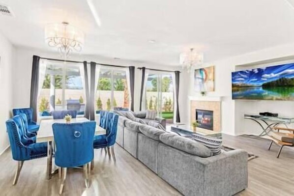 • TVs: 6 big-screen TVs throughout the house, ranging from 55” to 75”, including a 75” TV in the living room and an outdoor TV. The master bedroom features a 65” TV.