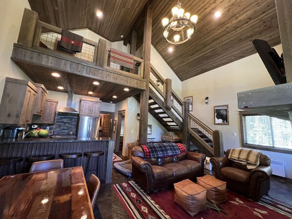 "Buffalo Pine Cabin" is a cozy 3 bedroom, 2 bath cabin with an open floor plan and large wood burning fireplace both inside the great room and under the covered front porch. The cabin is situated on a large lot with no other cabins in view. We just added high-speed Starlink WIFI. The main level has the master bedroom with a queen bed and pillow-top mattress. The main level bathroom has double sinks and a tub/shower combo. The kitchen opens into the great room with bar top that seats four. The kitchen, along with both bathrooms, has granite countertops and stainless-steel appliances that include dishwasher, refrigerator, and gas range with vent hood and a microwave. The kitchen is fully equipped with pots/pans/dishes/paper plates/stainless and plastic utensils/trash needed for your cooking needs. There is a Keurig machine with coffee, hot chocolate, green tea, cappuccino, and other selections. We provide bed linens, bath towels, hand towels, and wash cloths. On the main level there is a dining table and a desk great for fly-tying or writing. At the top of the timber staircase are two bedrooms and a bathroom with a tub/shower combo. One of the bedrooms has a queen bed that slides to the side to accommodate a twin bed trundle just like the master. The other bedroom has a full bed with no trundle. Each bedroom also has a closet cabinet with hangers and shelves to organize your clothing during your stay. All of the bedrooms have flat screen TV's with DVD players. There is also a smart TV and DVD player located above the stone fireplace in the great room. We have a selection of DVD's to choose from in addition to those you bring for your stay. There is firewood and fire supplies including roasting sticks for marshmallows or smores in the evening. The cabin has electric convection heating units throughout. There is no air conditioning. It is usually quite cool in the evenings so opening the windows will cool things down if necessary. The covered front porch has six Adirondack chairs by the outdoor fireplace. Buffalo Pine Cabin is located in the Phillips Lodge/Elk Creek area of Island Park. You are approximately 5-10 minutes away from Pond's Lodge, Phillips Lodge, Elk Creek Ranch, Island Park Reservoir, Box Canyon, Buffalo River and World-Class fly fishing. Just 20-30 minutes away are West Yellowstone/Yellowstone National Park, Harriman State Park and Mesa Falls. Buffalo Pine Cabin is on a dual-use roadway with access to miles of ATV trails. You can leave directly from the cabin to access these trails. The cabin has a large driveway to accommodate trailers for ATV's and snowmobiles. We provide a trash removal service so you won't need to bother with hauling away your trash and we have laundry service to wash bedding and towels. There is also a washer and dryer for your convenience. Whether you are coming to Island Park for the wonders of Yellowstone, ATV or snowmobile riding, or the world-class fly fishing, Buffalo Pine Cabin will not disappoint. No pets or smoking please. Thanks!