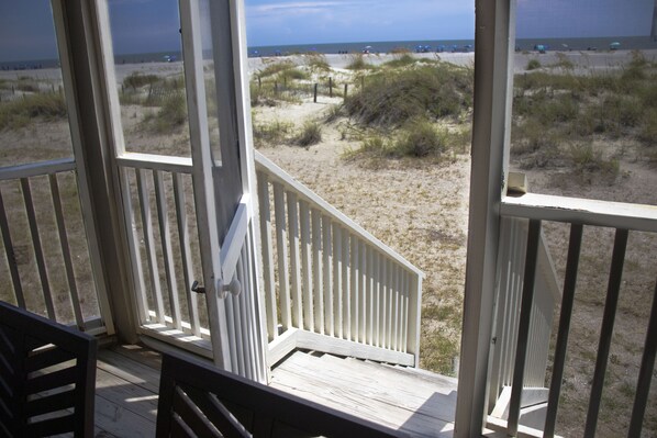 PASSO DA VOI backdoor SU MIGLIA DI BELLA SPIAGGIA! Questo primo piano una camera, un bagno di condominio ha accesso diretto alla spiaggia da una veranda privata schermato! Godere di una cucina completamente attrezzata, cucina aggiornato w / ripiani in granito e croccante mobili bianchi. Pranzo per quattro con due sgabelli al bancone. Il soggiorno offre una nuovissima (2014) Regina divano letto, un grande televisore a schermo piatto w / DVD e un lettore CD. La hall offre posti a sedere supplementari / letto con un divano letto comodo, cos�� come un mobile bar w / una piccola macchina raffreddamento di vino e ghiaccio. Il maestro, decorata in blu luminoso e bianco, ha un letto matrimoniale, televisore a schermo piatto, docking station per iPod e accesso diretto al portico schermo. Fuori il maestro, condiviso con la sala, ����� un bagno completamente rinnovato. Godere di una cabina doccia w / soffioni doccia doppia, pavimenti in piastrelle, mobili aggiornati, un specchio regolabile e asciugacapelli. Il complesso Port O'Call offre l'accesso alla piscina comunità e griglia a carbone. WIFI. Biancheria. Vietato fumare. No animali.