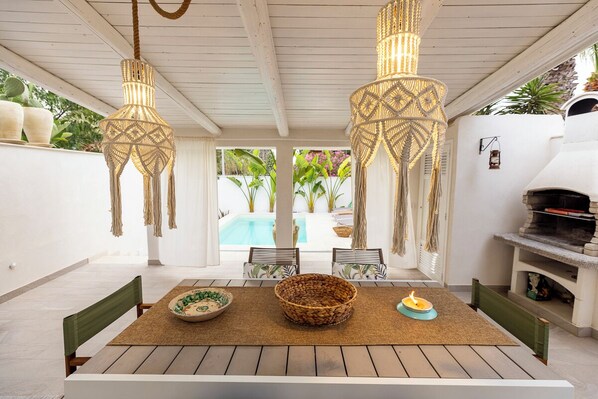 Trascorrerai la maggior parte del tempo all'aperto, godendoti la piscina, l'area barbecue e la doccia esterna. La villa è completamente recintata, garantendo la massima privacy e sicurezza. Per il tuo comfort, Villa delle Palme è dotata di aria condizionata/riscaldamento in ogni camera, TV a schermo piatto nelle due camere da letto, lavatrice, ferro da stiro e asciugacapelli.