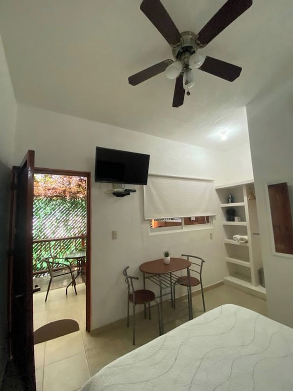 Bahía Suite 1 è una nuova stanza con porta e chiave in legno, ha un letto matrimoniale con il proprio bagno, ha un set di lenzuola, 2 cuscini, Smart tv, TV via cavo, Internet, minibar, piccola sala da pranzo per 2 persone, 2 sedie, aria condizionata, ventilatore a soffitto, armadio, ferro da stiro, ganci per vestiti e asciugamani.