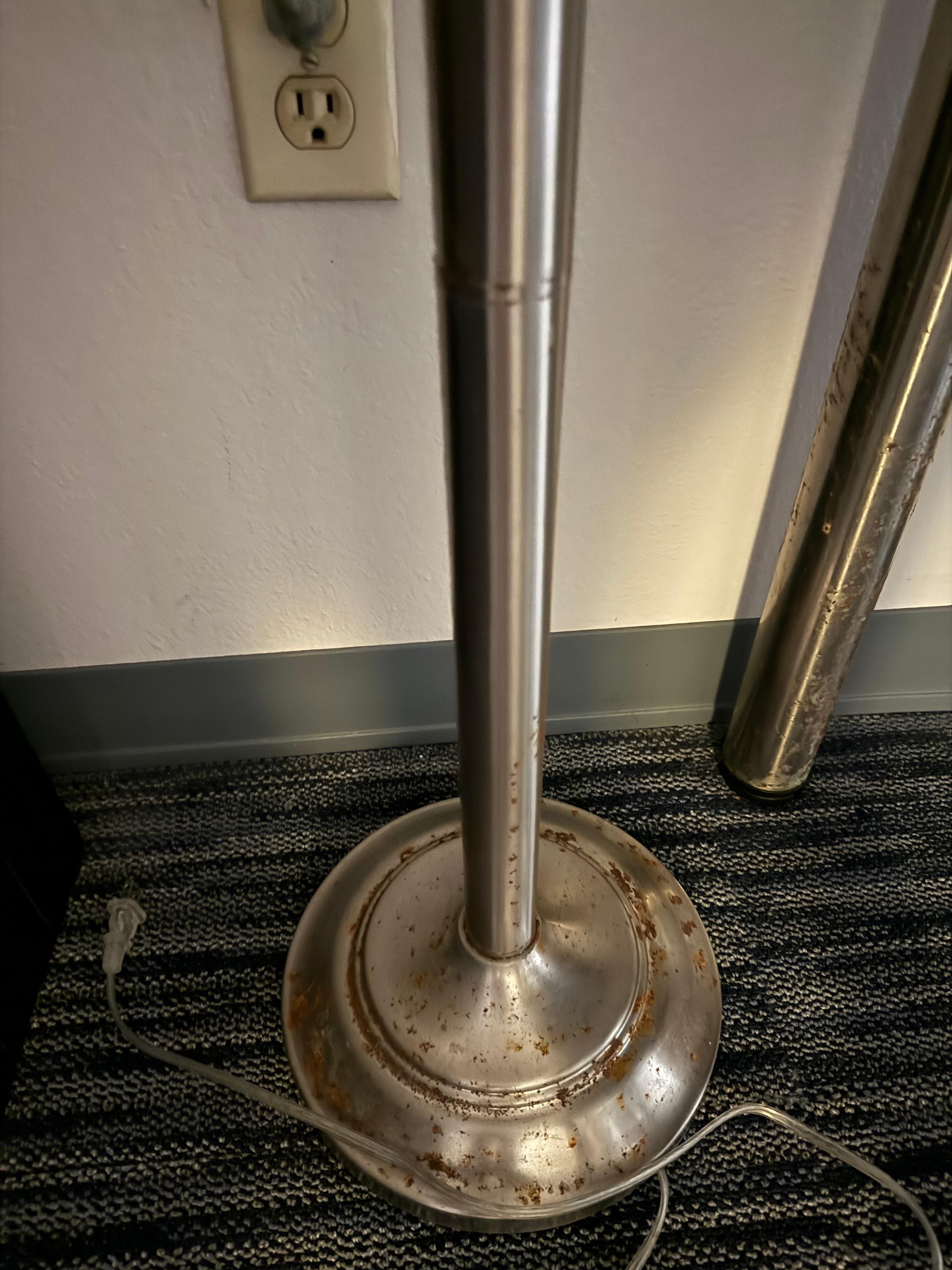 rust on the heating cooling unit, rust at the base of the lamp that does not work, rust on the light fixtures