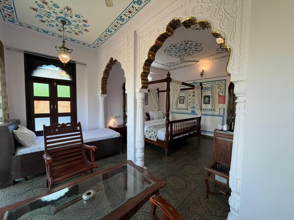 Tutte le camere di Jharokha Heritage Hotel Jaipur dispongono di comodità come postazioni laptop e l'aria condizionata, oltre a extra come salotti separati e sale da pranzo separate.
