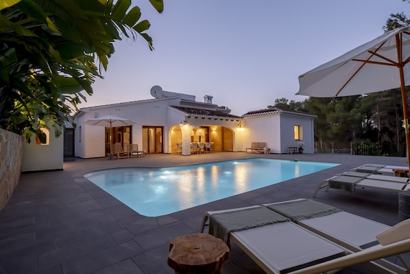Questa villa a Javea con piscina privata e cucina