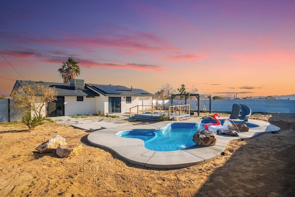 Our favorite feature of our peaceful desert oasis house is the fully-fenced backyard and in-ground pool. We’ve lovingly created a private, relaxing space for you to enjoy.