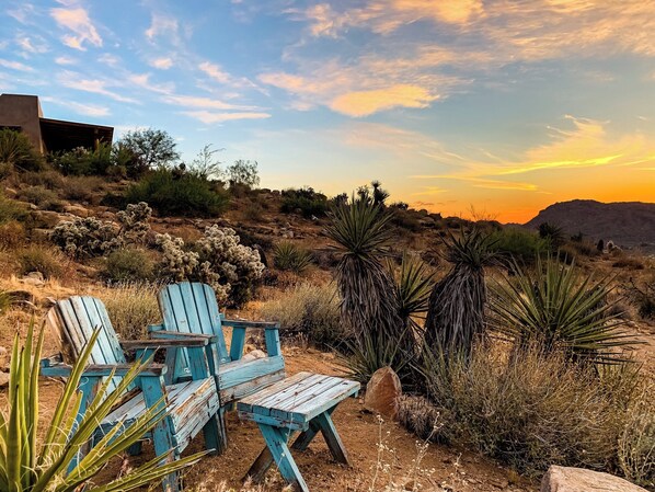 Luna Vista dispone di riscaldamento centralizzato e aria condizionata, ma le zone giorno esterne ti attireranno all'aperto: prova la doccia da cowboy o immergiti in una vasca da cowboy! Non c'è niente di meglio dopo una giornata di divertimento nel deserto! E mentre sei qui, non dimenticare di sperimentare il tortuoso sentiero naturalistico che ti condurrà intorno alla proprietà di 2,5 acri. Potrebbe ispirarti a continuare le escursioni direttamente nel Joshua Tree National Park. Facci sapere nel nostro registro della fauna selvatica quali creature hai incontrato. Con tutto questo da vedere e da fare appena fuori dalla tua backdoor, potresti non voler mai lasciare questo luogo magico!