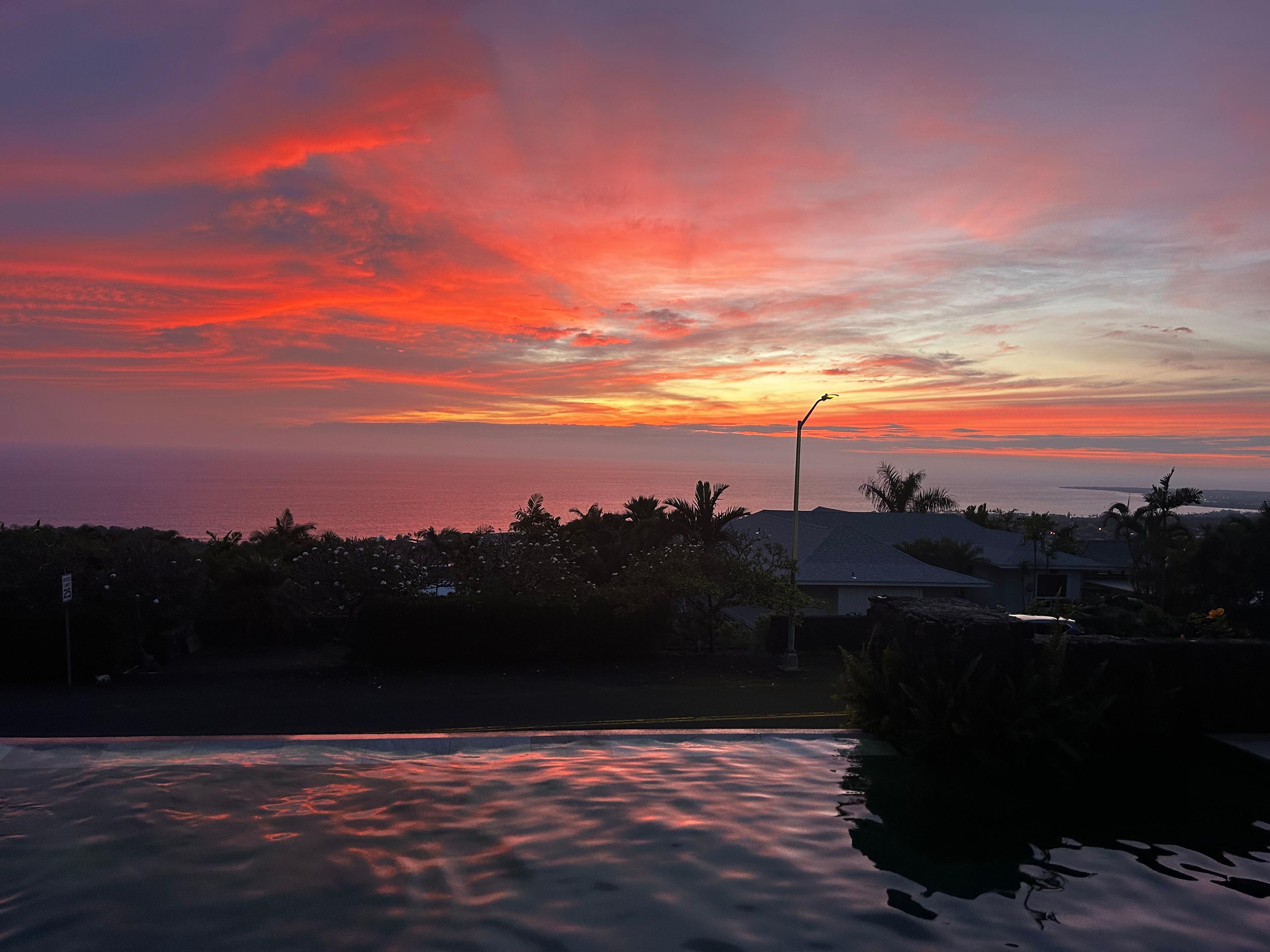 This home was exactly as described. Only 10 miles from the airport and 2.5 miles from town. The infinity pool was excellent and the sunsets amazing. Sitting out in the covered lani was everyone’s favorite spot. Internet and cell service were excellent.