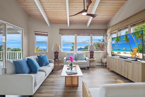 Split-zoned A/C units are available in bedrooms along with ceiling fans in every bedroom and living area help carry the already cooling breezes from the ocean. Guests will appreciate the short drive to downtown Kailua-Kona where outdoor dining, ocean adventures, and beautiful beaches await!