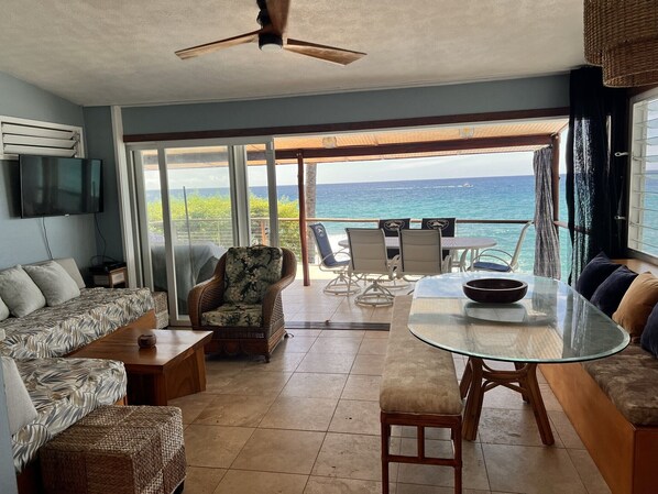 L'intera casa ha subito una ristrutturazione importante, comprese tutte le nuove finestre, camere da letto e bagni, cucina ed esterni. La zona giorno principale di Hale Honu ("la casa al piano superiore") si trova al secondo piano e offre due ampie camere da letto (con letti king e cuscini in piuma davvero comodi), più una terza camera più piccola con un letto completo. Al piano superiore sono due bagni, e una soleggiata, cucina aperta e zona giorno, con una parete di vetro completamente retrattile che si apre sul nostro lanai di 450 piedi quadrati, rendendo la cucina, soggiorno / sala da pranzo e veranda con vista sull'oceano uno spazio all'aperto contiguo. La cucina è una delizia per i buongustai con una gamma di gas a 5 stelle, elettrodomestici in acciaio inossidabile con un nuovo frigorifero con portafinestra (con due fabbricatori di ghiaccio), un sacco di spazio di lavoro e tutto ciò che un cuoco serio vuole. Riceviamo molti commenti da parte degli ospiti che ci dicono che la cucina è la più attrezzata di qualsiasi casa vacanza che hanno precedentemente affittato. La vista a 180 gradi della costa Kona sono mozzafiato da ogni finestra. Potresti non voler mai lasciare questo posto!