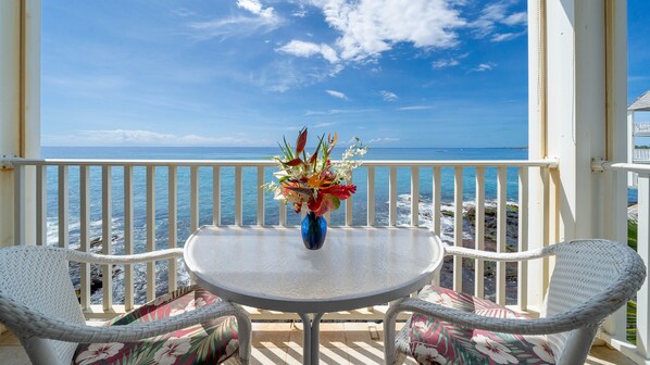 Condominio fronte oceano vero e assoluto con un lanai (balcone) che quasi pende sull'oceano. Qualunque più vicino e staresti nuotando. Guarda le pozze di marea sottostanti dove tartarughe e anguille amano venire a mangiare. Lascia che i suoni del mare ti facciano addormentare dopo la tua giornata di visite turistiche o di relax; sia la camera da letto che il soggiorno si affacciano sul mare. La cucina in legno di mango e il frigo sotto zero sono solo alcune delle cose meravigliose della cucina. Walk in doccia e pavimenti in piastrelle attraverso. Un sacco di meravigliose piccole cose per rendere il vostro soggiorno rilassante tra cui una scrivania, wifi, cavo e parcheggio gratuito. Sulla gestione del sito in ufficio, vicino all'ascensore per aiutarvi con qualsiasi domanda o necessità.