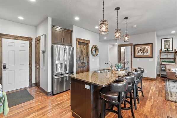 – Dining room with seating for 6 at table, 4 at island