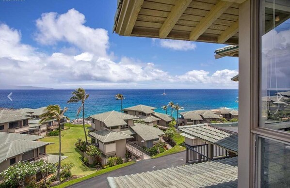 2-Story Townhouse (2 ° piano / 3 ° piano), 1150 piedi quadrati, unità Bridge significa NO scale per accedere al secondo piano), 1 camera da letto, 2 bagni, 4 posti letto; 1 letto matrimoniale king size in camera da letto principale e divano letto queen-size giù per le scale, banconi in granito, aria condizionata, ventilatori, pavimenti in piastrelle, elettrodomestici in acciaio inossidabile, cucina completamente attrezzata, TV, telefono fisso, internet, vista sull'oceano espansiva!