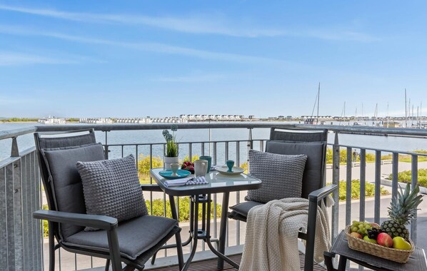 Moderno, di alta qualità e arredato in modo accogliente, gli ospiti si sentono a casa fin dal primo momento e possono lasciarsi andare. Che si tratti di rilassarsi sul comodo divano letto o di guardare la TV, di sedersi al tavolo da pranzo o di preparare i pasti nella cucina ben attrezzata, la vista sulle navi e sull'acqua è sempre presente.