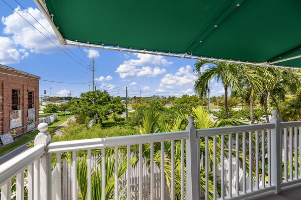 Questo recentemente rinnovato appartamento con due camere da letto si trova in The Shipyard, un quartiere di Truman Annex, nel cuore della città vecchia di Key West! Colorate, modelli di divertimento riempiono il noleggio con la vita mentre gli arredi offrono un comodo spazio di ritrovo per il vostro gruppo. Il ponte soleggiato si affaccia sulla vista a distanza dell'oceano attraverso gli alberi rigogliosi, ma può anche essere un rifugio ombreggiato con l'aiuto del tendalino regolabile.