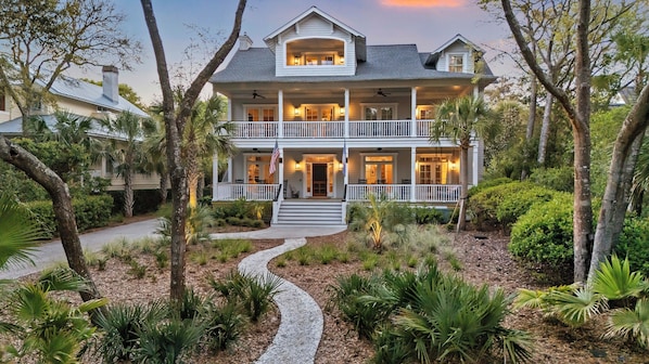 Perhaps the most special part about this home are the many outdoor places to relax, including the screened-porch, the pool deck, or any spots on the wrap-around porches, including rows of rocking chairs for morning coffee or the swing bed for late afternoon nap. And for outdoor entertainment, we'd be remiss not to mention the private saltwater pool, a keystone feature of this impressive home and perfect for those lazy days after some time on the beach. There is also a hot tub that can be heated for a daily fee!