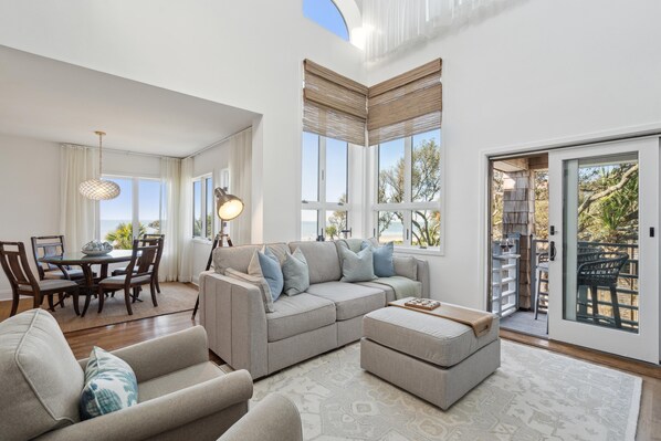 In serata, soffermati sulla vista sull'oceano dal salotto del salotto prima di accomodarti nel salotto in stile raffinato per una conversazione sugli eventi del giorno o per guardare il tuo film preferito sul grande televisore a schermo piatto.