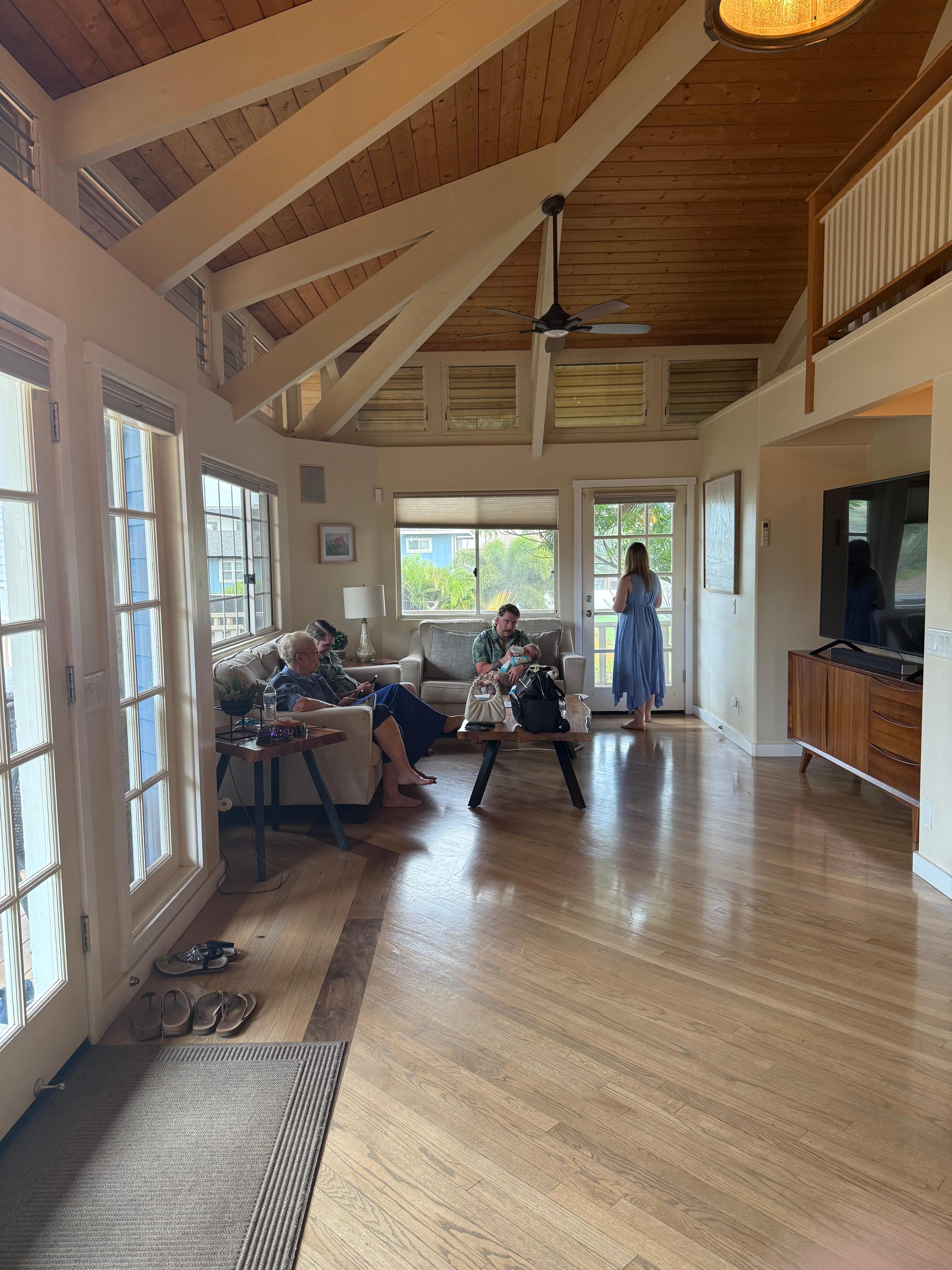 Questa casa principale è perfetta per le famiglie che vogliono avere abbastanza camere da letto e spazio per godersi il tempo insieme. La parte al piano superiore della casa principale ha soffitti altissimi e una zona giochi loft per bambini. L'open space al secondo piano è perfetto per rilassarsi insieme alla famiglia, cucinare un buon pasto e godersi la vita all'aperto al coperto. Spostati liberamente dal soggiorno e dalla cucina su un ampio Lanai.