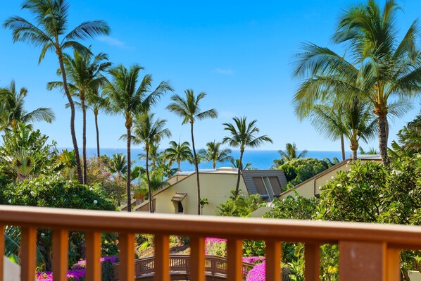 Property is close to the upper pool, tennis courts, has a lovely view from the lanai and is peaceful and great. It was our home away from home, with comfy living spaces and stuff to use at the beach and courts. Great location to walk to multiple beaches and into Kihei shops.