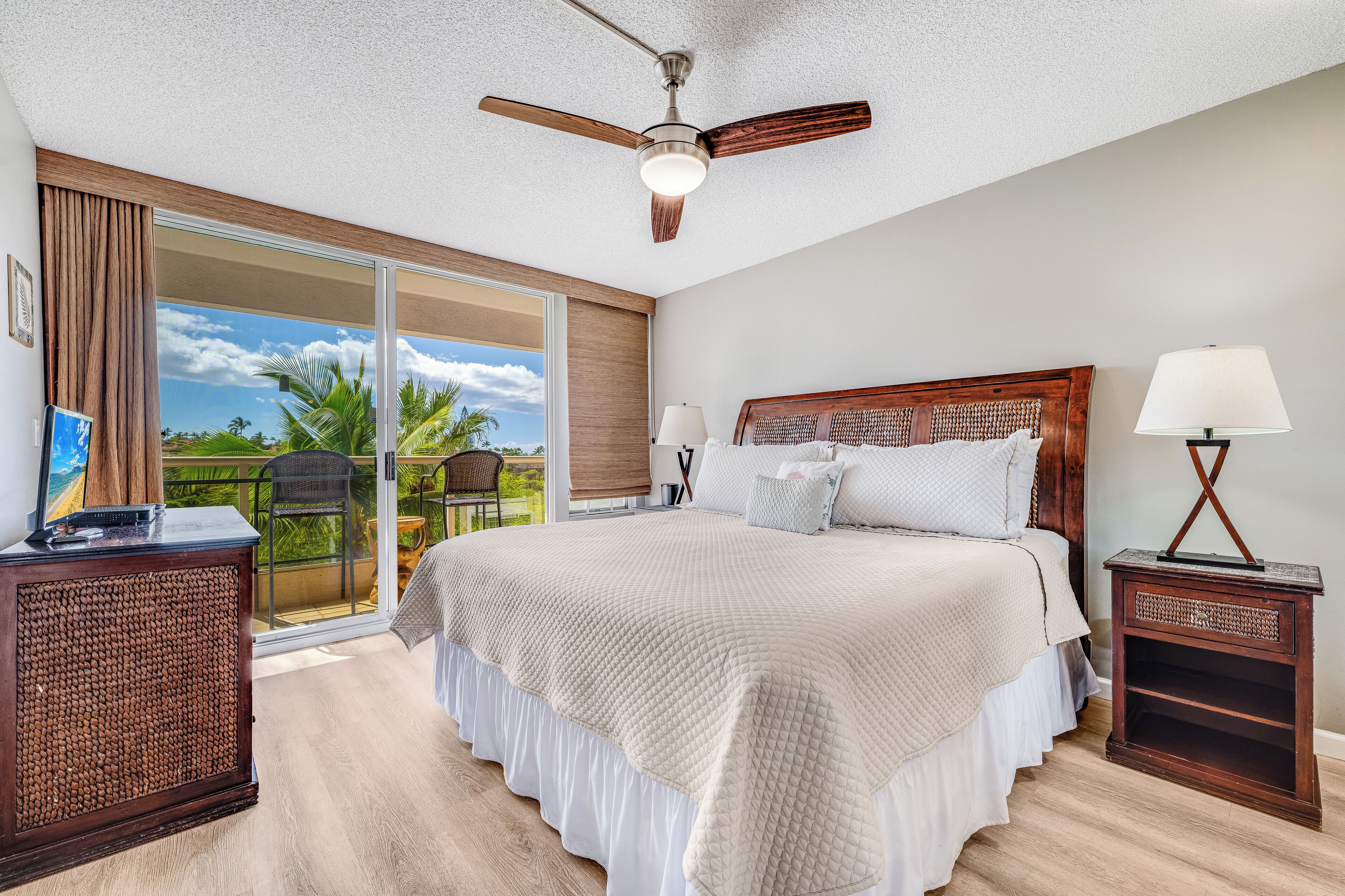 Rinnovato di recente con una nuova cucina scintillante, arredi di design selezionati a mano dai migliori showroom di Maui e opere d'arte locali e originali in tutto, questa vacanza tropicale unica nel suo genere è allestita come la base di partenza definitiva per la tua avventura Maui. Ospita fino a quattro persone in un comfort moderno ed elegante, con vista sull'oceano - e porta la vacanza vivendo al livello successivo.