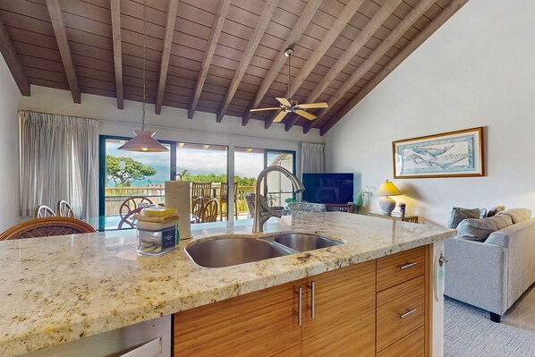 Luxury and privacy meet at this Kihei Condo, located in the condo resort known as Maui Kamaole®, and just minutes away from the three sunny Kamaole beaches. Kamaole Beach Park III, located just across South Kihei Road, is one of South Maui’s best swimming, snorkeling, and sunning beaches. This luxurious and extra-spacious condo showcases a lovely view. Strolling the grounds of this low-rise property, you'll discover tropical gardens, two pools (the lower pool is heated), a pool spa, tennis courts, and barbecue areas. Comfortably and elegantly furnished, this home provides many perks that include free high-speed WiFi, free cable TV, a DVD player, a washer/dryer, and a well-equipped kitchen. In-room safes are available. The spacious lanai offers spectacular views and a true taste of Hawaiian living.