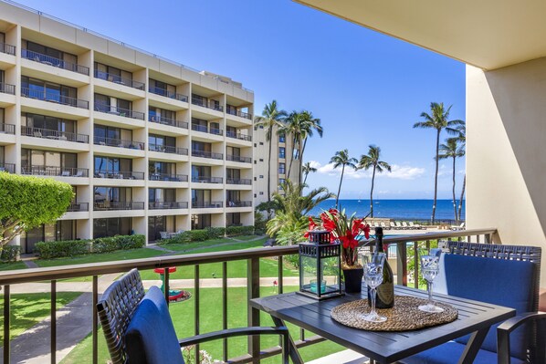 La veranda privata si affaccia sul mare dove si possono vedere Molokini cratere e isola Kahoolawe (l'unica isola disabitata nelle Hawaii), così come il lungomare zona centrale / piscina. In una giornata limpida, si sarà in grado di vedere l'osservatorio sulla cima della montagna Haleakala.
