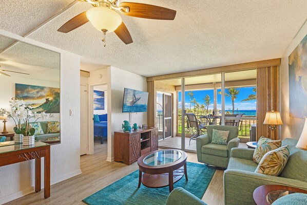 The best part is the gorgeous oversize and private lanai just off the living room. Imagine yourself each morning with your coffee or your evening meal with your favorite glass of wine while feeling the soothing ocean breeze! Start Dreaming.....