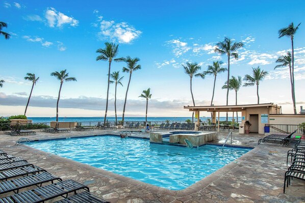 Centrally located, Sugar Beach Resort rests on Maalaea Bay, on the state's longest stretch of uninterrupted shore. Sugar Beach, named for its fine white sand, is a six-mile long beach excellent for swimming, snorkeling, windsurfing, kayaking, canoe paddling, or for just relaxing. Gaze at the spectacular sunsets, watch for whales (in season), or swim with green sea turtles—the opportunities are limitless. World-class golf, five-star restaurants, exclusive island shops, and the famous Kihei Farmers Market are minutes away.