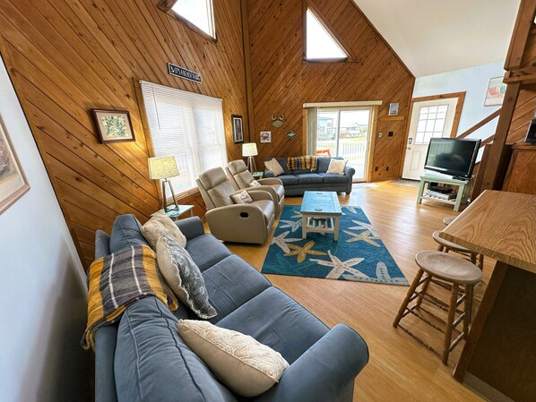 Il livello superiore comprende una splendida suite padronale con un letto king size, ventilatore a soffitto, TV e bagno completo. Il bagno principale ha una vasca e doccia. C'è anche una zona salotto privata con accesso al solarium facile da cui si può godere la vista del Wright Brothers Memorial.