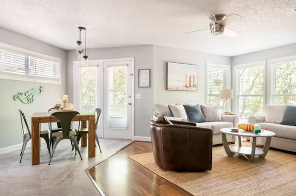 We are on the first floor, you will have to walk up 5 steps to the front door. It's perfect for couples, families or a group of friends, we aim to accommodate all. We provide beach towels, but you will want to rent/bring any beach equipment that you will need for your stay at the beach. We also provide linens and bath towels. We have toiletries, dishwasher & laundry detergent, k-cups, tea & sugar just to name a few.