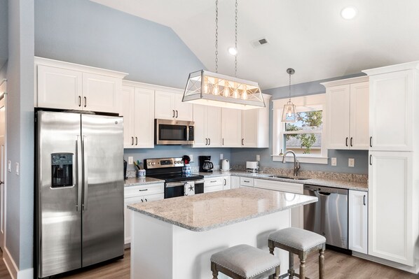 Gull Point Too is a newly constructed home centrally located at milepost 6.5 in Kill Devil Hills. This modern design features quality finishes throughout, including LVT flooring, custom tile, granite countertops and stainless steel appliances. An open-concept layout and vaulted ceilings in the living, dining and kitchen area make the space feel bright and inviting. Everything you'll need is within a mile radius: shopping, groceries stores, a movie theater, mini golf and restaurants including The Jolly Roger and Goombays Raw Bar and Grill. Fishing enthusiasts will appreciate the close proximity to the Avalon Fishing Pier. Best of all, the beach is just a short bike ride away at the nearby Fifth St. public access.