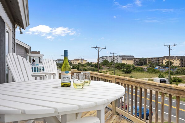 ✔ Top Deck: Semi-ocean views with bar table and chairs