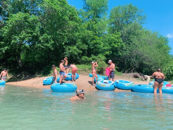 Son's Blue River Camp is 2 miles downriver and is our tubing/kayaking take out location. During the warmer months we have shuttle vans and buses shuttling guests between the two properties so they enjoy a nice float down the beautiful San Marcos River! The trip takes around 2 hours to tube and is very enjoyable!