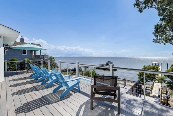 Piano terra: lavanderia con lavatrice / asciugatrice, vasca idromassaggio sul ponte rialzato con vista sul suono, patio in stile Lagniappe al piano terra con vista sul suono.