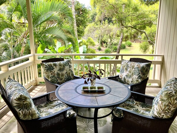 The moment you step out to the private lanai and take a deep breath, the mind is instantly reset by birds chirping in the trees and the tropical foliage all around. You will appreciate the quiet and secluded vibe, yet with easy access to beaches, shops, restaurants. After exploring the island from this convenient basecamp, enjoy playing a board game, streaming your favorite show from the smart TVs, or just kicking back with a drink in the spacious lanai.