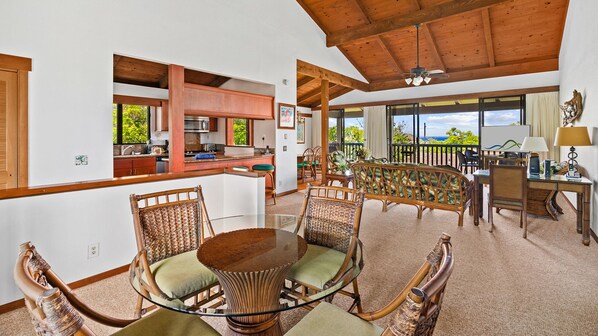 • Flat screen TV in living room, private ocean view lanai