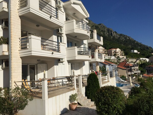 Attico di lusso, vista mozzafiato sulla baia di Kotor, piscina condivisa, WiFi
