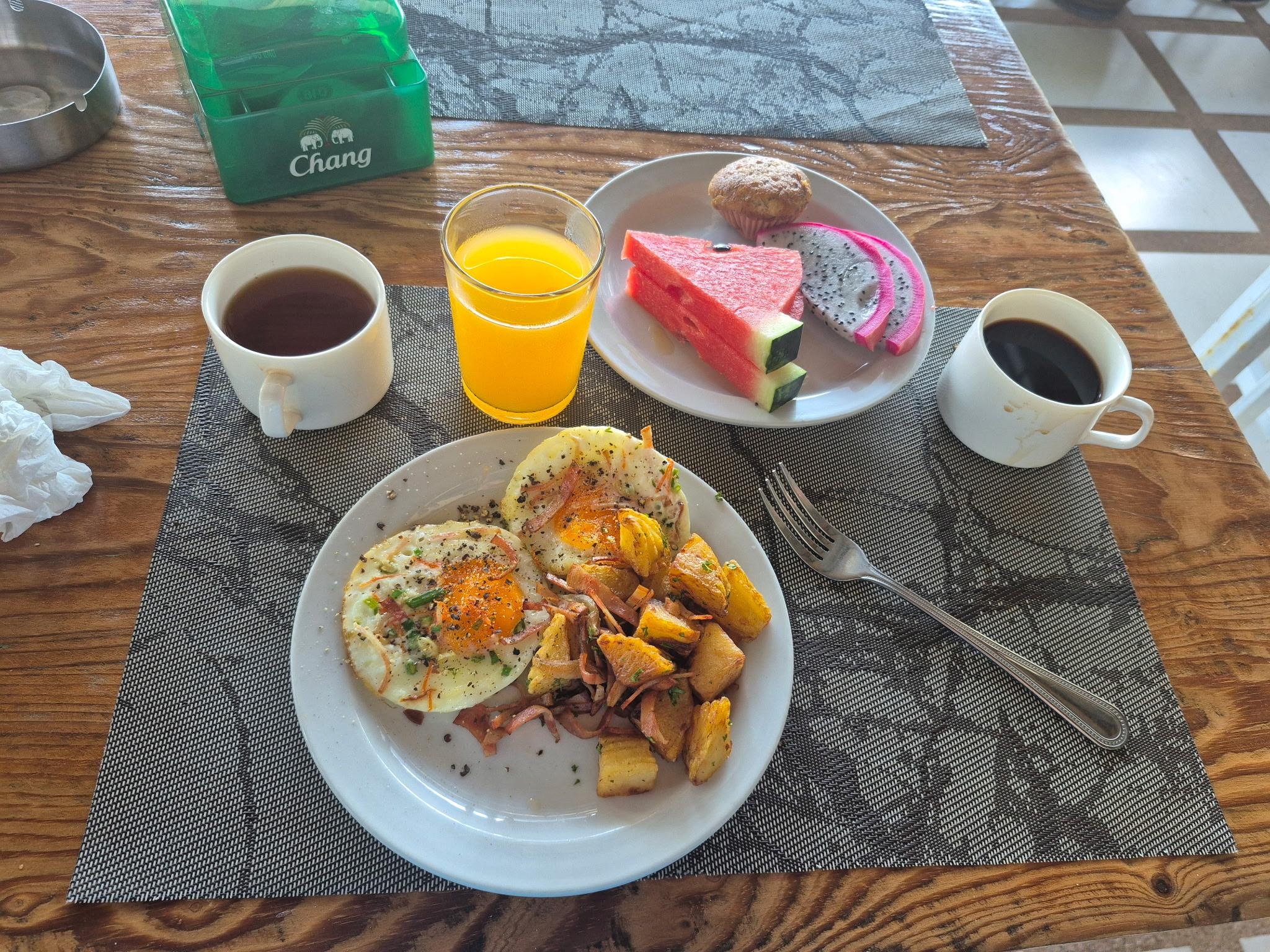 Pretty relaxed stay, the rooms were big and air conditioned, the bed was comfortable, the location was pretty good despite being a 10 min walk from the beach. Cleanliness was alright although the bathrooms quickly ran out of toilet paper every now and then. Lockers and free towels are provided which was great. Breakfast was pretty good for a fair price. Overall a good stay and will consider coming back if I return to Ao Nang.