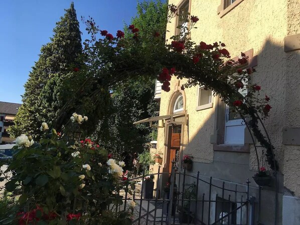 Un balcone in comune offre una bella vista sul giardino. Il giardino recintato e l’area esterna, ricchi di fiori, sono a disposizione di tutti gli ospiti.