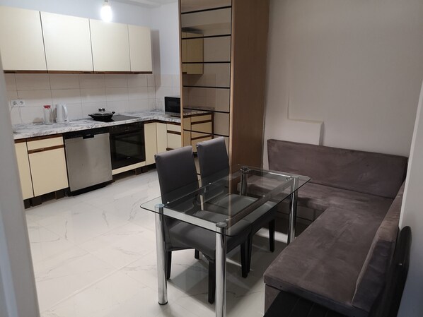 Only 4 big plates and two saucepans for a place that sleeps six. Not enough cutlery.