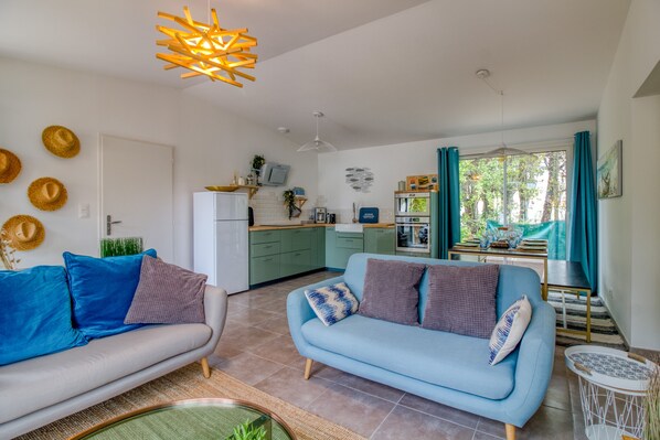 Nuova casa con decorazioni contemporanee sull'isola di Noirmoutier, a 300 m dalla spiaggia e 600 m dalla città di Epine. La Beau di ieri offre una certa posizione e un'atmosfera da sogno per trascorrere alcuni giorni o settimane in questa bellissima isola dell'Atlantico.