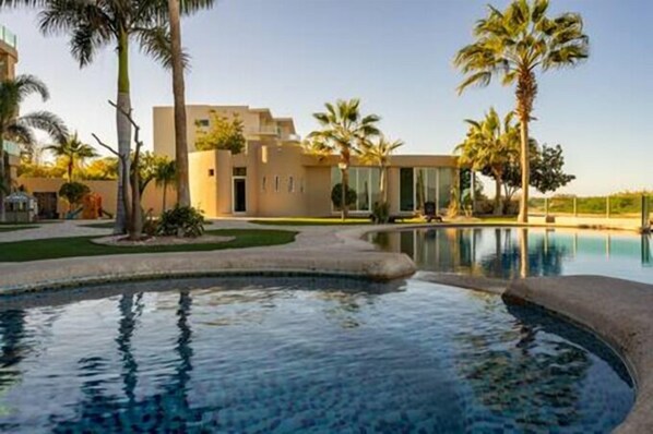 Sistemazione sulla spiaggia con una piscina all'aperto