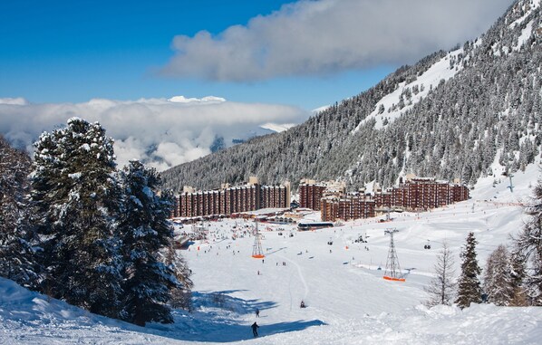 At the foot of the slopes and 150 meters from the ESF and the Club Piou-Piou.