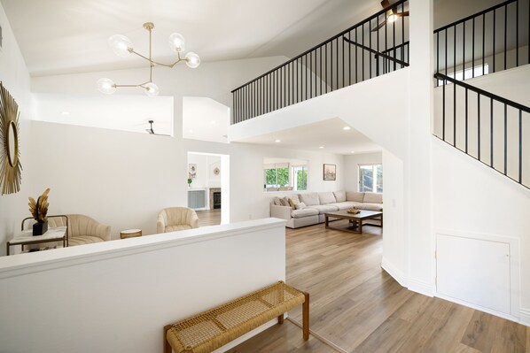 -The living area features large conformable sectional, coffee table and 70" smart TV. Aside the living space enjoy the lounge space with glass of wine!
