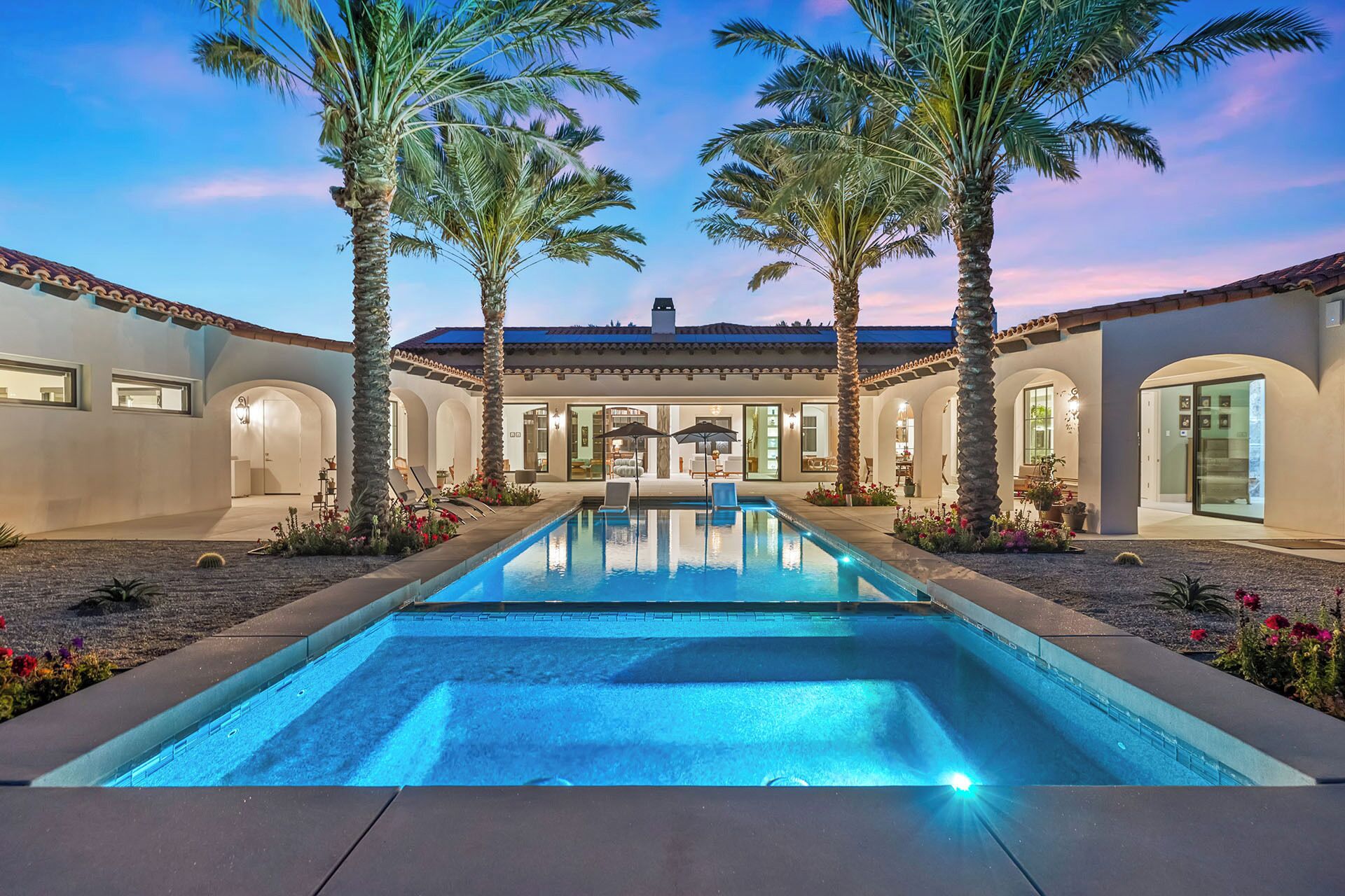Featuring clean, modern lines and architecture, 16 foot vaulted ceilings, a VIP concierge service, in a gated community - this 5 bedroom, 5 bath home is a perfect escape. Situated on a half-acre lot, each Polo Villa features an expansive pool and spa area with an outdoor firepit, perfect for entertaining.
