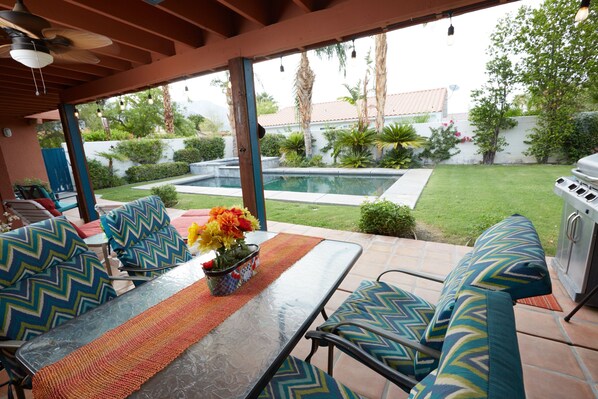 Casa privata con piscina di acqua salata e centro benessere a La Quinta Cove. 2 camere da letto, 2 bagni, posti letto 6-8, 2 regine, 1 letto king size, 1 matrimoniale, 1 singola. Ho un manager chiamato il servizio di prima classe di pulizia, Eleazar a La Quinta che utilizzo per eventuali esigenze di manutenzione durante il vostro soggiorno.