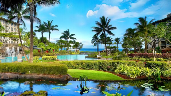 2 Ocean-Pool Bar & Grills, for a more exclusive dining visit and the award-winning restaurant 'Pulehu' in the North Tower.