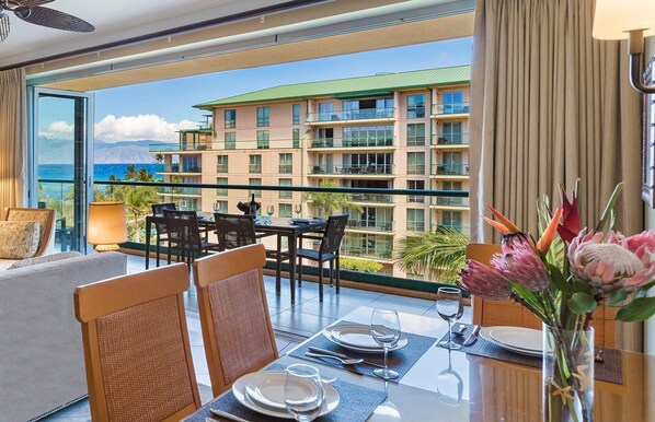 Hokulani 511 vanta un'incredibile posizione al quinto piano con cortile interno con vista sull'oceano al di sopra delle palme. Raccogli, ricollegati e festeggia in questo spazioso piano con 2 camere da letto che offre un'abbondanza di spazio interno con uno spazio aggiuntivo di 235 m² di balcone adiacente. Questa suite può ospitare fino a sei persone in due letti king-size e un divano letto queen-size. Godetevi il pavimento in piastrelle aggiornato e lasciatevi trasportare nell'incantevole cielo di Maui dopo aver riposto le porte in vetro e lasciato che l'interno si fondesse perfettamente con l'esterno.