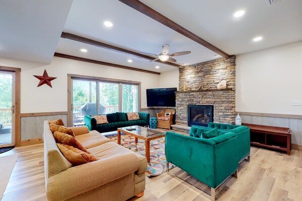 Luxurious home with hot tub for 7, game room, fireplace, central AC, & WD