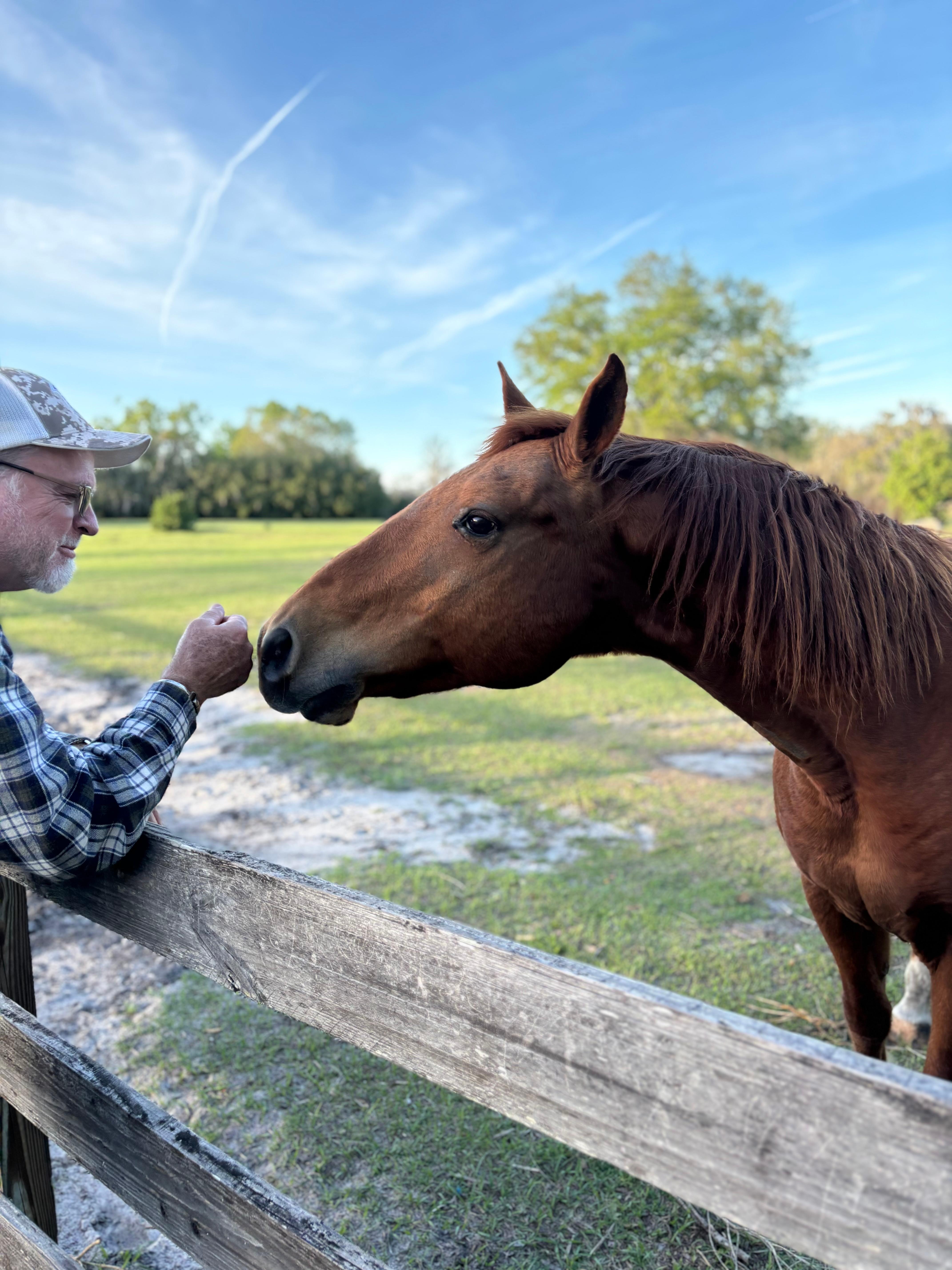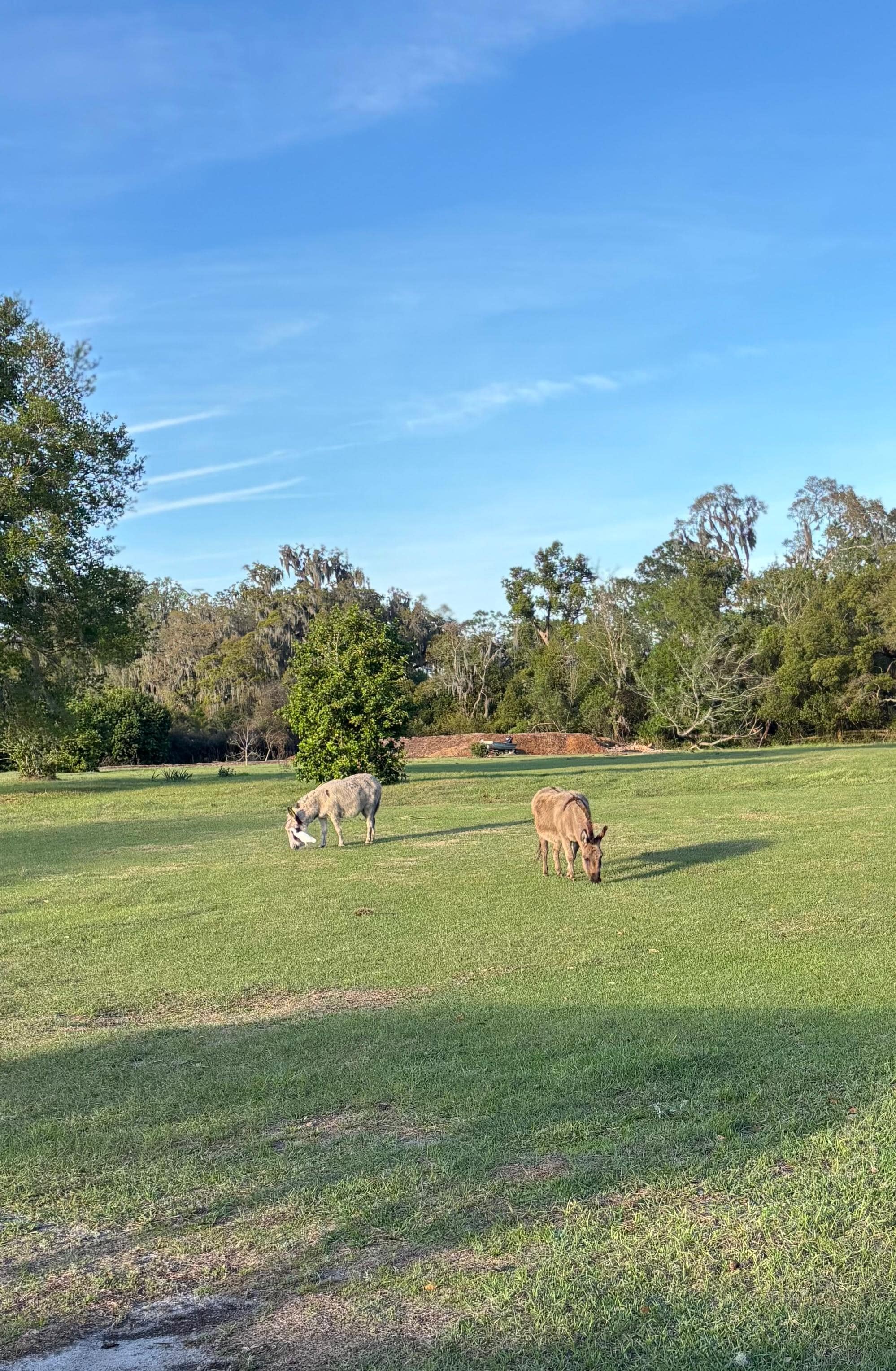 There is a pergola in front of the tiny home by the meadow where there are feed buckets on the fence and there are horse treats left in the kitchen so you can interact with the horses and mini-donkeys. There are also treats left for the ducks so you can feed them as well.