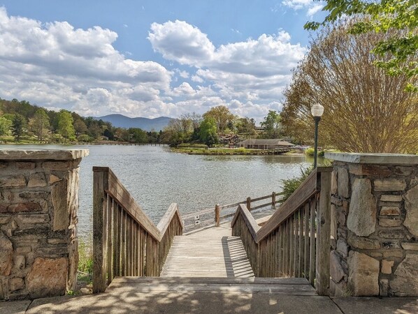 Located in the heart of the Lake Junaluska Conference & Retreat Center, this home is just a 5-minute walk from all meeting spaces. You'll also find a variety of amenities within walking distance, including an outdoor swimming pool, a large playground for children ages 2-10, canoe, kayak, and paddleboard rentals, a mini-golf course, tennis courts, a basketball court, a gift shop with an ice cream counter, and a cafe. The scenic walking trail around Lake Junaluska is directly accessible from the home.